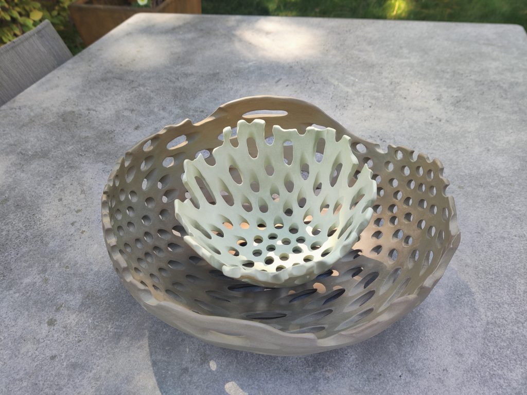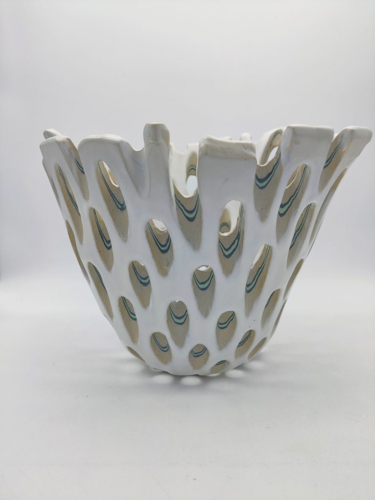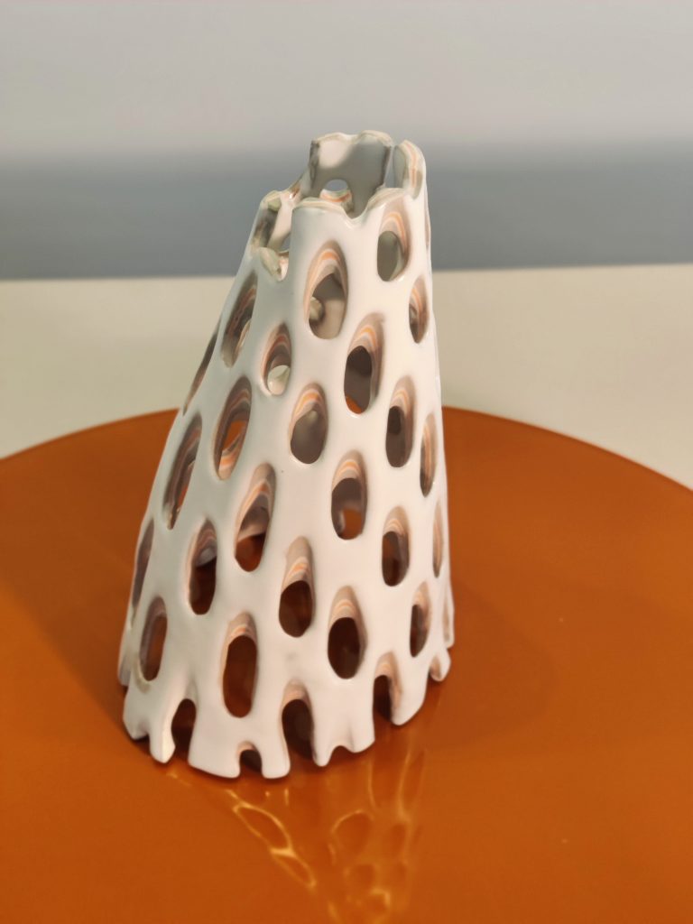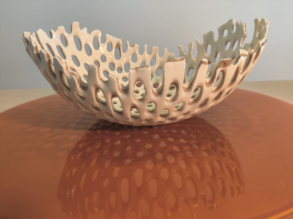 My latest ceramic work explores themes of destruction and fragility, of strength and materiality. I’m also playing with stains and glazes to accentuate negative spaces, to accentuate shapes and create different moods.